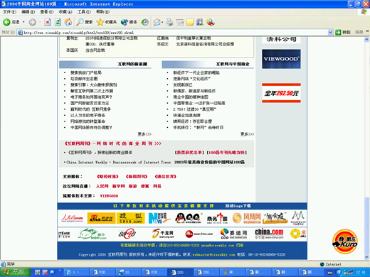 以互聯(lián)網(wǎng)的發(fā)展為推動,網(wǎng)絡(luò)時代的商業(yè)變革逐漸深入,產(chǎn)業(yè)融合趨勢逐漸清晰,并由此而引發(fā)了新一輪的互聯(lián)網(wǎng)投資與應(yīng)用熱潮。10月22日,互聯(lián)網(wǎng)周刊主辦的"2004中國商業(yè)互聯(lián)網(wǎng)發(fā)展論壇“暨’2004中國商業(yè)網(wǎng)站100強”頒獎盛典將在天倫王朝舉行。