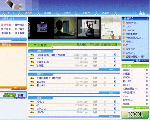 隨著互聯(lián)網(wǎng)在中國的普及和網(wǎng)絡(luò)基礎(chǔ)建設(shè)的完善,越來越多的人開始上網(wǎng),隨之而來的就是各種網(wǎng)絡(luò)服務(wù)的大行其道,我們就來看看最近很火的網(wǎng)絡(luò)視頻點播VOD。領(lǐng)導(dǎo)下命令,對目前視頻點播產(chǎn)品做一個評估,沒有辦法,只有照辦。既然要評論自然要找最好的來感受一下。南京遠(yuǎn)古的Web VOD5.0。在技術(shù)上較為領(lǐng)先,根據(jù)南京遠(yuǎn)古官方宣布,該系統(tǒng)可以達(dá)到1000并發(fā)。十分好奇,終于托人找到了體驗版本。