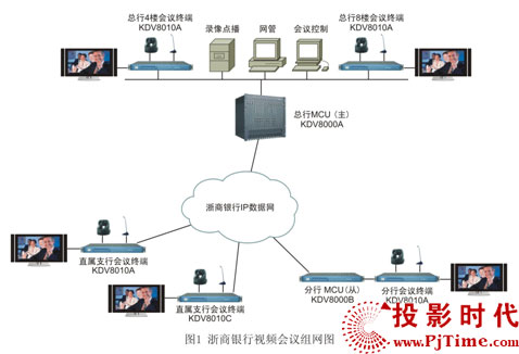 作為業(yè)內(nèi)領(lǐng)先的專(zhuān)業(yè)視訊廠商,科達(dá)從銀行業(yè)的競(jìng)爭(zhēng)環(huán)境出發(fā),結(jié)合浙商銀行目前的應(yīng)用需求和未來(lái)的戰(zhàn)略規(guī)劃,為其提供了差異化的系列視頻會(huì)議產(chǎn)品及創(chuàng)新性的整體解決方案。建成后的系統(tǒng)以總行為中心,通過(guò)IP數(shù)據(jù)網(wǎng)連接各直屬支分行。為了便于實(shí)現(xiàn)分級(jí)、分層的會(huì)議調(diào)度與管理,系統(tǒng)采用MCU兩級(jí)級(jí)聯(lián)的組網(wǎng)架構(gòu)。