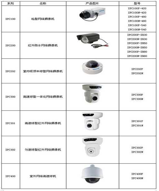 附:科達網(wǎng)絡(luò)攝像機新品列表