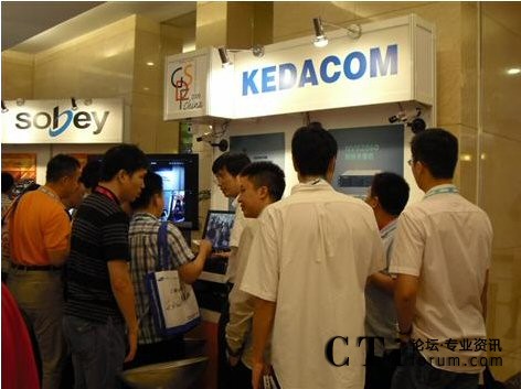 CTI論壇(ctiforum)08月04日消息: 第四屆全球數(shù)字監(jiān)控論壇(GDSF)于2009年7月29日在廣州東方賓館拉開帷幕。在此次活動(dòng)中,科達(dá)(KEDACOM)提出了“全高清”的概念,即在前端采集、編碼傳輸、錄像存儲(chǔ)、解碼顯示、中心管理等各個(gè)環(huán)節(jié)實(shí)現(xiàn)高清,才是真正的高清監(jiān)控,而NVR作為網(wǎng)絡(luò)監(jiān)控時(shí)代的代表,必將成為全高清監(jiān)控的核心組成部分。圖1 科達(dá)展位現(xiàn)場(chǎng)