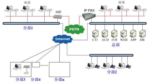 針對(duì)第一章節(jié)所提到的三種呼叫中心,最適合中小企業(yè)的是第二類和第三類,也就是基于板卡的和基于IP PBX的呼叫中心。如果某企業(yè)只有一個(gè)辦公點(diǎn),沒有分支機(jī)構(gòu),那么兩者都可以采用,但是如果有分支機(jī)構(gòu),那么第三類呼叫中心更適合,下面以案例說明基于IP