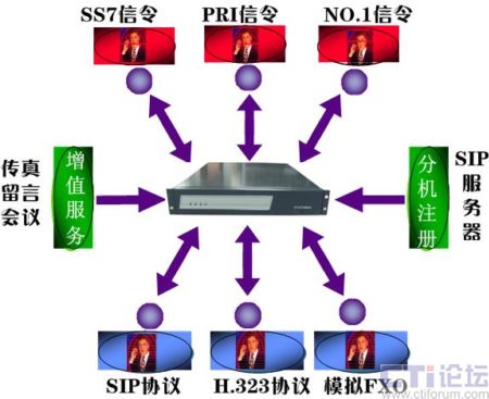 傳統(tǒng)信令協(xié)議方式包括N0.7信令、NO.1信令、ISDN-、 FXO(環(huán)路中繼)VOIP 信令協(xié)議包括SIP、H.323,同時支持多種協(xié)議/多種中繼的接入,不用增加、更換任何硬件設備和任何配件即可靈活地實現(xiàn)傳統(tǒng)交換機與軟交換網(wǎng)絡的無縫連接,為企業(yè)實現(xiàn)IP通信降低了門檻。