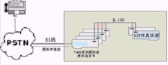 TeleMS TMS系列語音卡均在卡上集成了高密度傳真資源,單板支持4至20通道的傳真容量,是國內(nèi)目前獨有語音和傳真資源高密度集成的語音卡,這些資源屬動態(tài)分配,任意交換,卡內(nèi)和系統(tǒng)內(nèi)的所有通道可共享。特別適合構(gòu)建高密度自動語音和傳真混合服務(wù)系統(tǒng)。
