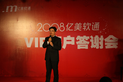 2008年12月29日,在港澳中心舉辦的2008億美軟通VIP客戶答謝會圓滿結(jié)束,參會的嘉賓客戶和合作伙伴是來自IT行業(yè)、金融行業(yè)、品牌服務(wù)業(yè)等各行業(yè)的優(yōu)秀企業(yè)的領(lǐng)導(dǎo)和代表,他們分別是:中國通信企業(yè)協(xié)會增值業(yè)務(wù)委員會、GOOGLE(中國)投資有限公司、微軟(中國)投資有限公司、百度公司、網(wǎng)易公司、TOM公司、凡客誠品、中信銀行、工銀瑞信基金管理有限公司、泰達荷銀基金管理有限公司、新東方教育集團、上海思創(chuàng)服飾有限公司、樂友達康、神州數(shù)碼斯特其股份、青鳥健身、龐大汽貿(mào)集團、北京高校畢業(yè)生就業(yè)指導(dǎo)中心、國政通網(wǎng)絡(luò)科技有限公司、中寬網(wǎng)信公司。馮總致詞