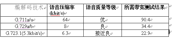 由于技術的發(fā)展,目前各種語音編碼方案在缺省參數(shù)下生成的語音質量都比較良好,因此系統(tǒng)本身對話音的音響相當小。實際語音質量取決于客戶的IP數(shù)據網絡情況,主要包括下面兩個因素:網絡延時和網絡丟包率。