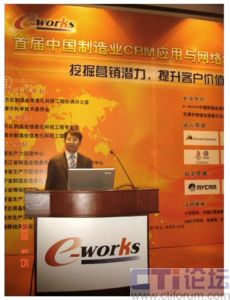 MyCRM于4月25日在天津參加了由e-works 主辦的主題為“挖掘營銷潛力,提升客戶價值”的“首屆中國制造業(yè)CRM應(yīng)用與網(wǎng)絡(luò)營銷年會”。國內(nèi)外優(yōu)秀知名CRM廠商MyCRM、微軟、賽捷、TurboCRM齊集本屆年會。并就中國制造業(yè)CRM應(yīng)用及圍繞中國制造企業(yè)如何進(jìn)行管理創(chuàng)新、營銷創(chuàng)新和服務(wù)創(chuàng)新等方面進(jìn)行了演講。圖1 MyCRM實(shí)施服務(wù)總監(jiān) 趙海濤 發(fā)表演講