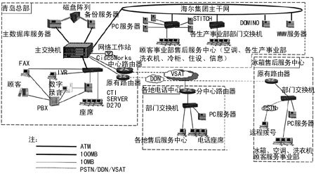 另外,海爾集團(tuán)電話中心原有的顧客服務(wù)系統(tǒng)屬于第二代Call Center 系統(tǒng),話務(wù)員的工作量較大,服務(wù)功能受到很大的限制,特別是客戶信息及時收集的速度受到影響。為了滿足對市場快速響應(yīng)的需要,海爾集團(tuán)決定建立具有智能功能(如ACD:自動呼叫分配)的第三代呼叫中心,采用第三代具有ACD技術(shù)(如來電主叫號碼自動顯示、呼叫轉(zhuǎn)移、自動回?fù)艿龋┑暮艚兄行,向客戶提供更個性化的服務(wù)。