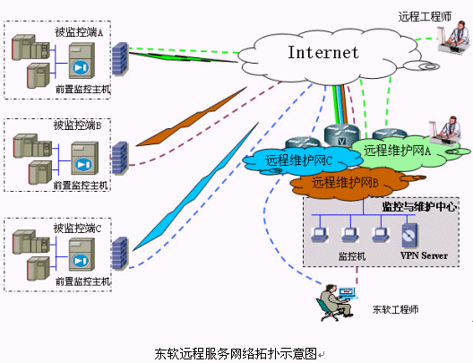 以東軟IT HELPDESK作為接入平臺,結(jié)合基于VPN的遠(yuǎn)程監(jiān)控、遠(yuǎn)程維護(hù)技術(shù),遵照ITIL流程,為客戶提供及時(shí)、優(yōu)質(zhì)的服務(wù),達(dá)到降低服務(wù)成本、提高服務(wù)效率、改善客戶滿意度的目的。