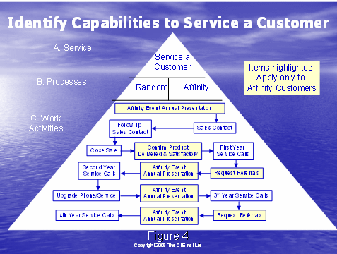 圖4中的全部圖片推翻了所需的服務(wù)客戶的行動。這兩種方法提供了不同的過程以達到這個結(jié)果。在這個部分的底部,C. 工作行動,這些方格體現(xiàn)了頂端開始的行動,和經(jīng)歷之前描述的獲得和保持客戶的過程。