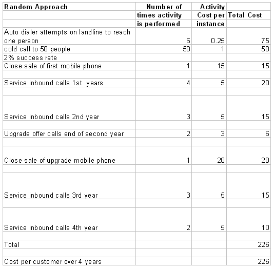 表格1:獲得客戶的隨機法的行動成本計算