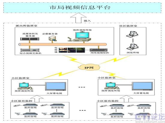 當(dāng)前社會(huì)治安工作思路的“三個(gè)轉(zhuǎn)變”(治安工作由“打擊為主”向“打防結(jié)合、預(yù)防為主”轉(zhuǎn)變,治安管理由“靜態(tài)”向“動(dòng)態(tài)”轉(zhuǎn)變,防控體系由“單兵作戰(zhàn)”向“整體聯(lián)動(dòng)”轉(zhuǎn)變),對(duì)加強(qiáng)警民聯(lián)防聯(lián)動(dòng)體系建設(shè)提出了更高的要求,使其成為平安城市工程的一項(xiàng)重要建設(shè)內(nèi)容。社會(huì)技防網(wǎng)的建設(shè)單位主要是企事業(yè)單位和居民住宅小區(qū),我們可以將其泛指為“社區(qū)”。這是因?yàn)樗麄兊淖≈范际窃谀骋簧鐓^(qū)范圍內(nèi)的;并且派出所的轄區(qū)一般對(duì)應(yīng)當(dāng)?shù)氐慕值擂k事處,其對(duì)下工作的行政區(qū)劃也是社區(qū)。平安城市的根本在社區(qū),社區(qū)治安的好壞將直接影響到整個(gè)社會(huì)的和諧發(fā)展。社區(qū)治安防控體系應(yīng)與“3111工程”進(jìn)行有效銜接,即保證市公安局、區(qū)分局、派出所、社區(qū)四級(jí)聯(lián)防聯(lián)動(dòng)。公安局到派出所的視頻監(jiān)控系統(tǒng)已經(jīng)進(jìn)行了大力建設(shè),社區(qū)視頻監(jiān)控也具備了一定的規(guī)模,且將繼續(xù)發(fā)展和完善,因此,社區(qū)與派出所之間的視頻聯(lián)防聯(lián)動(dòng)系統(tǒng)的建設(shè)日益提升到重要日程。
