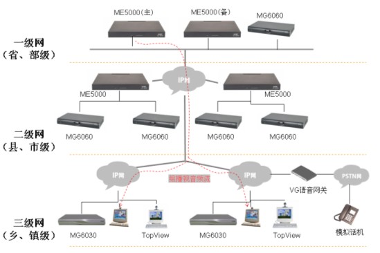 采用雙機(jī)熱備技術(shù),2臺(tái)ME5000通過(guò)IP網(wǎng)絡(luò)(局域網(wǎng)、廣域網(wǎng))在線熱備。出現(xiàn)意外情況時(shí),備份ME5000將及時(shí)接替原MCU將會(huì)議繼續(xù)召開,不需要終端進(jìn)行任何操作,保障會(huì)議延續(xù)。
