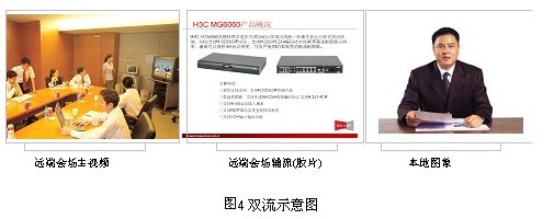 雙視頻流傳輸是指同時傳輸兩路動態(tài)視頻到各分會場:雙流是指分會場能夠?qū)⒈緯䦂龅膬陕芬曨l同時傳輸?shù)組CU上,MCU 能夠?qū)陕芬曨l同時傳輸?shù)礁鞣謺䦂觥E5000與MG6060配合可以將終端第二路視頻傳輸?shù)狡渌麜䦂,適用于在開會的同時,對文件、圖片講解,使會議更加生動,內(nèi)容更加豐富。