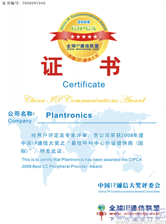 在近日結(jié)束的CIPCA2008年度中國IP通訊大獎評選中,繽特力(Plantronics) 榮獲“最佳呼叫中心外設提供商(國際類)”稱號。CTI論壇編輯