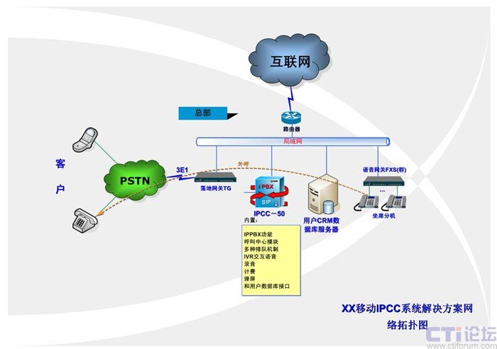 隨著社會(huì)的進(jìn)步和發(fā)展,各企業(yè)和公司越來越重視將現(xiàn)代科技和營(yíng)銷相結(jié)合,華東某省移動(dòng)公司,為了快速高效地拓展自己的業(yè)務(wù),決定借助網(wǎng)絡(luò)和通訊的發(fā)展建立新的營(yíng)銷平臺(tái),通過嚴(yán)格的考察和篩選,選擇攜手Polylink集團(tuán)打造新型的IP呼叫中心平臺(tái)。 4.方案設(shè)計(jì)