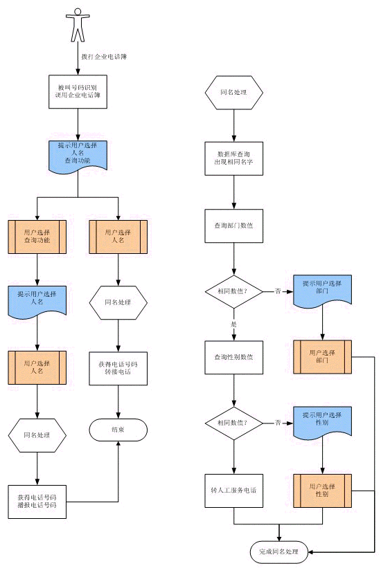 當(dāng)電話簿記錄中出現(xiàn)同名時,可以定義同名的區(qū)分條件,如不同部門,不同性別等。在語音識別時,根據(jù)區(qū)分條件提示主叫選擇。