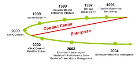 Envision 1994年成立于美國西北部主要都市西雅圖,致力于客服質(zhì)量管理應(yīng)用軟體與服務(wù)的世界領(lǐng)導(dǎo)品牌;以客戶實際運營需求為產(chǎn)品研發(fā)導(dǎo)向,進一步整合品質(zhì)監(jiān)測暨績效優(yōu)化解決方案,提供客戶單一完整操作便利的全方位的解決方案。因此多年來不但獲得市場廣大客戶的系統(tǒng)建置支援與使用效益證言愛護,更榮獲許多專業(yè)高階管理精心評選出主要呼叫中心產(chǎn)品應(yīng)用與服務(wù)等大獎。