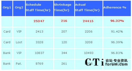 缺點(diǎn)是,此報(bào)表顯示出的只是表定出席人數(shù),而非實(shí)際現(xiàn)場出席人數(shù),故在呼叫中心現(xiàn)場管理時(shí),可導(dǎo)入具有遵時(shí)異常管理功能或座席監(jiān)控模塊之人力資源優(yōu)化系統(tǒng)(例如:Grandsys