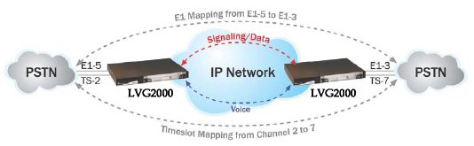 TDM隧道利用LVG 2000內部的路由功能(不需要網(wǎng)守或MGC控制)從TDM (1 to 16 E1/T1/J1)或單獨時隙接收語音和數(shù)據(jù)流,轉換為在IP網(wǎng)絡上傳輸?shù)臄?shù)據(jù)。