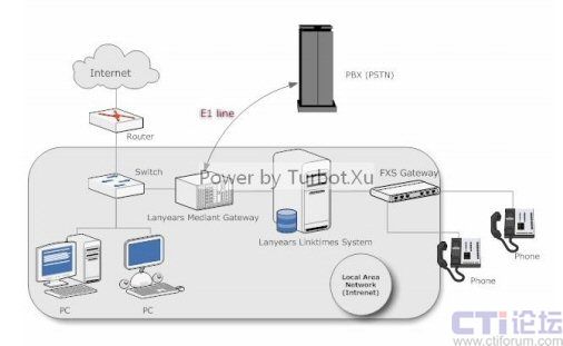 眾所周知,我們在進(jìn)行語音通信時(shí),最為重要的就是語音的質(zhì)量,有人會提出,這種以IP傳送語音的方式不能保證語音質(zhì)量,當(dāng)然,這種擔(dān)憂是有所必要的,但如果你仔細(xì)看看上面的拓?fù)鋱D后會發(fā)現(xiàn),這個(gè)方案中用到IP的地方都是在局域網(wǎng)中處理的,并沒有牽扯到Internet