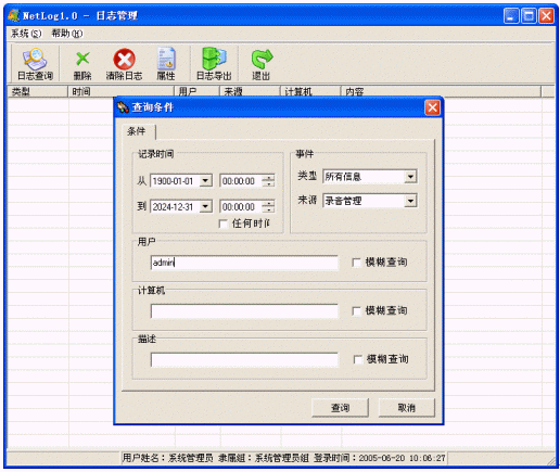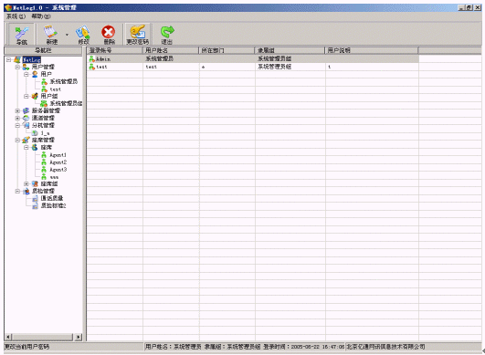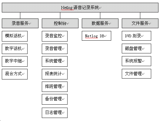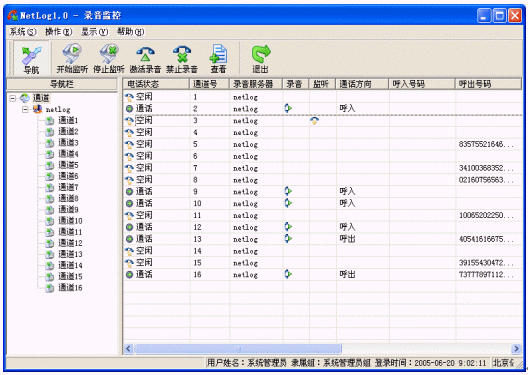 Netlog系統(tǒng)中控制臺是一個統(tǒng)一配置和管理的平臺,可以部署在網絡內的任意一臺主機上,各個功能模塊都可以單獨工作,也可以同時使用,控制臺所有模塊可以通過系統(tǒng)導航(ToolBar)來引導啟動。用戶可以通過控制臺操作網絡上所有記錄服務、數據服務和文件服務。控制臺作為最終用戶終端可以完成用戶的所有操作,設置每個服務器甚至每個通道的屬性、執(zhí)行各種用戶操作、指定服務的工作方式、錄音查詢、錄音管理、輸出報表、排班等?刂婆_根據用戶權限的不同限定用戶的操作,更好的保障了系統(tǒng)的運行和語音記錄文件的安全。