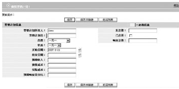 營銷計劃管理功能可以讓用戶跟蹤每個營銷計劃已生成的業(yè)務(wù)機(jī)會量。當(dāng)創(chuàng)建業(yè)務(wù)機(jī)會時,用戶可以在營銷計劃來源字段中填入相關(guān)信息,以表明該業(yè)務(wù)機(jī)會是由營銷計劃生成的,從而檢驗、評定每個營銷計劃的執(zhí)行效率。