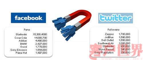 這就是今天的世界,社交媒體的發(fā)展速度和對我們生活的影響,已經(jīng)遠遠超出我們的想象,根據(jù)Cone Business in Social Media, 2009的統(tǒng)計,在美國已有93%的消費者認(rèn)為企業(yè)在社交媒體上應(yīng)該擁有代表其企業(yè)的用戶,而60%的消費者已經(jīng)開始在社交媒體上與企業(yè)進行交互。根據(jù)Nielsen, Global Faces & Networked Places, 2009的統(tǒng)計,在美國超過1/2的人,每天花在社交媒體上時間,已經(jīng)超過花在收發(fā)郵件的時間,而在Facebook注冊的新用戶,增長最快的是35歲以上的人群,而不再是我們過去想象的只有年輕人,下一代才愿意在Facebook這樣的社交媒體上進行交流。如下圖說示,根據(jù)2010年10月統(tǒng)計的結(jié)果,在Facebook上Starbucks已有超過1500萬的粉絲,而Coca-Cola有超過1400萬的粉絲,這意味著無論是Starbucks還是Coca-Cola,他們在Facebook上的任何舉動,都可以讓超過1400萬人瞬間知道,并可以對企業(yè)的舉動做評價或轉(zhuǎn)發(fā)。