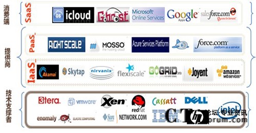 除此之外,云計算也有CaaS(Communication as a Service,通信即服務)、DaaS(Data as a Service,數(shù)據(jù)即服務)等分類形式。業(yè)界主流的設備廠商、服務提供商都在定位自己在云中的位置,并制定自己的云戰(zhàn)略。