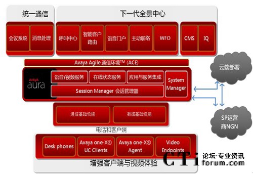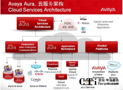 - 當其他廠商還在爭論公有云和私有云的優(yōu)劣時,Avaya已經(jīng)開始部署企業(yè)的私有云—Avaya Aura 和運營商的公有云之間如何和諧共處;企業(yè)用戶的統(tǒng)一通信功能完全基于”按需服務激活”模式;