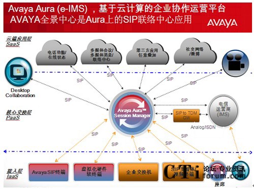 不僅是呼叫中心,Avaya還將統(tǒng)一通信的應用也放在了云端。在Avaya的e-IMS架構(gòu)中,各種企業(yè)通信的應用都被設置為云端的應用,它們通過Aura共享各種通信渠道。這是因為有了e-IMS的架構(gòu),Avaya的云呼叫中心才能真正做到: