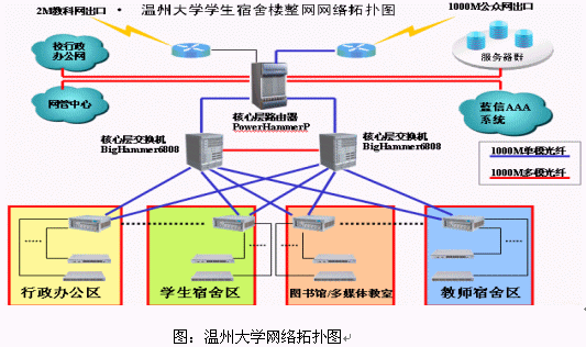 - 限制代理方面: 通過(guò)藍(lán)信寬帶計(jì)費(fèi)系統(tǒng)限制使用代理和雙網(wǎng)卡的功能,溫州大學(xué)徹底解決了校園網(wǎng)中,學(xué)生私設(shè)代理服務(wù)器等嚴(yán)重現(xiàn)象,極大的降低了網(wǎng)絡(luò)管理的難度,同時(shí)也避免了學(xué)校資金的流失。