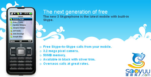 英國(guó)和黃3取消限制 買SIM卡即可任意撥打Skype 2009-04-27 |