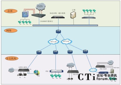 位于不同VPN網(wǎng)絡的分支機構統(tǒng)一接入X6系統(tǒng)進行交換轉(zhuǎn)發(fā)。