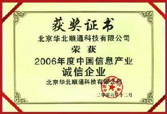 2007年1月16日,由中國(guó)計(jì)算機(jī)用戶協(xié)會(huì)(簡(jiǎn)稱CCUA)主辦的“中國(guó)計(jì)算機(jī)用戶協(xié)會(huì)2006年度企業(yè)及產(chǎn)品推介頒獎(jiǎng)大會(huì)” 在北京世紀(jì)金源大飯店隆重召開(kāi),通過(guò)對(duì)中國(guó)境內(nèi)從事IT產(chǎn)品生產(chǎn)、銷(xiāo)售、集成和服務(wù)企業(yè)的經(jīng)營(yíng)規(guī)模、服務(wù)能力、產(chǎn)品使用效果、企業(yè)誠(chéng)信和持續(xù)發(fā)展能力等多項(xiàng)指標(biāo)進(jìn)行綜合評(píng)定,揭曉了中國(guó)信息產(chǎn)業(yè)2006年度優(yōu)秀企業(yè)評(píng)選與產(chǎn)品推介活動(dòng)結(jié)果。華北工控憑借其在業(yè)內(nèi)深入人心的影響,再次獲得“2006年度中國(guó)信息產(chǎn)業(yè)誠(chéng)信企業(yè)獎(jiǎng)”和“2007年度中國(guó)信息產(chǎn)業(yè)行業(yè)采購(gòu)首選品牌”。