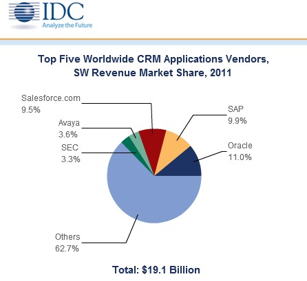 根據(jù)IDC的調(diào)查數(shù)據(jù)顯示,目前就CRM市場來說,Salesforce和SAP正呈現(xiàn)出一種超越甲骨文,奪取領(lǐng)頭羊?qū)氉内厔荨?br />云計算第一門戶