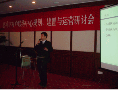 2點整,主持人宣布會議正式開始。首先是正音科技公司執(zhí)行副總秦裕農(nóng)先生致開幕詞。秦先生從2000多年前的周幽王烽火戲諸侯娓娓道來,一直講到IP技術(shù)在音頻、視頻上的應用,為大家生動形象地描述了通訊技術(shù)發(fā)展的歷程。在演講的最后,秦先生指出了一個客戶聯(lián)絡中心所應該具備的特性:"在這個客戶聯(lián)絡中心里,客戶應該能夠隨時隨地的通過電話、傳真、郵件、網(wǎng)絡電話、文字聊天、web協(xié)同等各種各樣的方式,第一時間找到企業(yè),解決他們的問題;在這個客戶聯(lián)絡中心里,企業(yè)能夠廉價地把分布于全國各地的服務資源聯(lián)系起來,進行統(tǒng)籌管理,統(tǒng)一為客戶提供服務;在這個客戶聯(lián)絡中心里,企業(yè)可以隨時把一個空閑的客戶服務人員調(diào)整為電話銷售人員,而不用去修改復雜系統(tǒng)設(shè)置;在這個客戶聯(lián)絡中心里,任何一個可以接入互聯(lián)網(wǎng)的員工,不管他身在地球的哪一個角落,都可以隨時隨地的接入系統(tǒng),變成一個坐席,為客戶提供專業(yè)的服務。"秦先生描述的這個完美的客戶聯(lián)絡中心立即博得了陣陣掌聲,同時也引起了與會者的極大興趣,如何才能實現(xiàn)這個猶如夢中的呼叫中心呢?"相信通過今天的研討會,各位會得到了一個滿意的答案",秦先生最后自信的向大家保證。