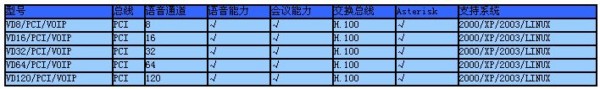 VOIP系列語音卡一覽表