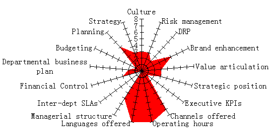 呼叫中心內(nèi)部的所有事務(wù),如中心、部門和個人KPI的設(shè)定,組織架構(gòu)安排,運營管理,人員招聘與培訓(xùn),技術(shù)采購與升級,環(huán)境安排等,都是以呼叫中心的戰(zhàn)略目標(biāo)為基礎(chǔ);也只有以企業(yè)的總體戰(zhàn)略為出發(fā)點、經(jīng)過上述過程而制訂的戰(zhàn)略目標(biāo),才使得呼叫中心內(nèi)部的各項事務(wù)與活動以成本高效的方式為企業(yè)總體目標(biāo)的實現(xiàn)做出貢獻成為可能。
