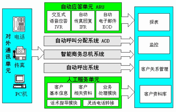 ACD(自動(dòng)呼叫分配)是呼叫中心有別于一般的熱線電話(huà)系統(tǒng)的重要部分,在一個(gè)呼叫中心中,ACD成批的處理來(lái)話(huà)呼叫,可根據(jù)用戶(hù)類(lèi)別、客戶(hù)支持的忙閑統(tǒng)計(jì)、客戶(hù)支持的服務(wù)能力、不同時(shí)段、主叫用戶(hù)的號(hào)碼、該用戶(hù)曾聯(lián)絡(luò)過(guò)的客戶(hù)支持、客戶(hù)支持的專(zhuān)業(yè)技能等級(jí)等信息并將這些來(lái)話(huà)進(jìn)行分配給具有相關(guān)職責(zé)或技能的各個(gè)業(yè)務(wù)代理。ACD提高了系統(tǒng)的效率,減少了客戶(hù)服務(wù)中心系統(tǒng)的開(kāi)銷(xiāo),并使公司能更好的利用客戶(hù)資源。