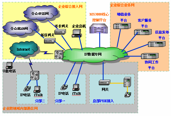 單一的電話(huà)通信方式已經(jīng)遠(yuǎn)遠(yuǎn)不能滿(mǎn)足現(xiàn)代企業(yè)(包括行業(yè)、政府機(jī)關(guān))在通信方面的需求,隨著IP網(wǎng)絡(luò)的不斷普及、新的通信技術(shù)的不斷發(fā)展,“多媒體協(xié)同通信”一個(gè)新的通信概念已經(jīng)展現(xiàn)在我們的面前。我們需要跨地域的內(nèi)部電話(huà),我們需要廉價(jià)的IP長(zhǎng)途,我們同樣需要通信服務(wù)平臺(tái)、信息發(fā)布平臺(tái),我們還需要工作協(xié)同、信息共享!岸嗝襟w協(xié)同通信”就能滿(mǎn)足我們這些需要。