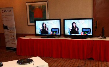 為了更好地展示新一代視頻系統,LifeSize公司現場接通了美國總部的視頻會議畫面,畫面逼真流暢。LifeSize公司創(chuàng)始人、首席執(zhí)行官Craig