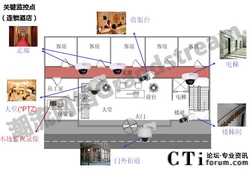 采用潮流網(wǎng)絡(luò)提供的網(wǎng)絡(luò)監(jiān)控平臺來加強(qiáng)管理和提高各個門市的服務(wù)質(zhì)量。由于是連鎖酒店,所以高層主管無法時時刻刻在各個酒店內(nèi)管理,讓高層對于酒店內(nèi)的營運(yùn)管理十分頭痛,所以當(dāng)主管在裝設(shè)監(jiān)控系統(tǒng)時要求希望達(dá)到透過Internet的集中監(jiān)控、分散管理,監(jiān)控中心的操作平臺方面希望能使用人性化的界面簡單不繁瑣。潮流網(wǎng)絡(luò)的監(jiān)控系統(tǒng)可展開樹狀目錄進(jìn)行不同地域的階層式管理,高層主管可透過網(wǎng)絡(luò)進(jìn)行“跨地域、跨網(wǎng)域”的實時監(jiān)看,隨時可掌控酒店內(nèi)的營運(yùn)狀況,無需再親自到酒店。
