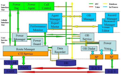 PBX、PowerCALL中間件、PowerVOICE、CRM系統(tǒng)、Web網(wǎng)站、人工座席、報表、錄音、監(jiān)控等。