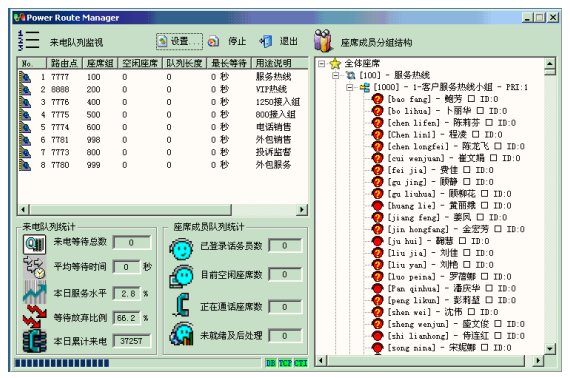 路由管理器是呼叫中心不可或缺的重要部分,一方面它擴展了交換機ACD的功能,從而實現(xiàn)呼叫的智能分配、平衡負(fù)載;另一方面,它對座席的分組、狀態(tài)進行動態(tài)的監(jiān)控和管理,并向其他相關(guān)應(yīng)用提供實時狀態(tài)信息和基礎(chǔ)統(tǒng)計數(shù)據(jù)。