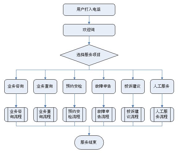 1)業(yè)務(wù)咨詢:用戶通過人工、自動語音等方式咨詢有關(guān)政策法規(guī)、資費標(biāo)準(zhǔn)、用氣常識、報裝方法等,系統(tǒng)以語音、傳真、Email、短消息等方式回復(fù)客戶。