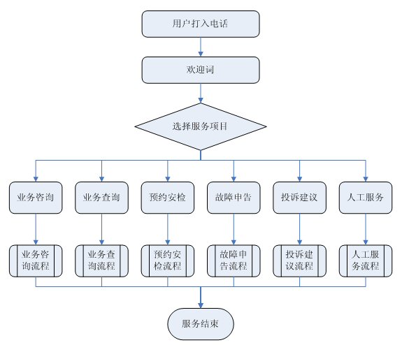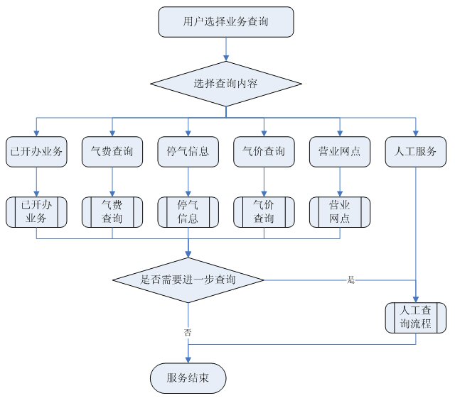 業(yè)務(wù)查詢:用戶可通過受理人員或自動(dòng)語(yǔ)音應(yīng)答系統(tǒng)根據(jù)用戶要求從數(shù)據(jù)庫(kù)查詢資料,然后通過語(yǔ)音方式播報(bào)或送到用戶指定傳真機(jī)或其他終端設(shè)備上。應(yīng)考慮以后用web方式查詢氣費(fèi)等數(shù)據(jù),以不動(dòng)及主體設(shè)備方式平滑升級(jí)。