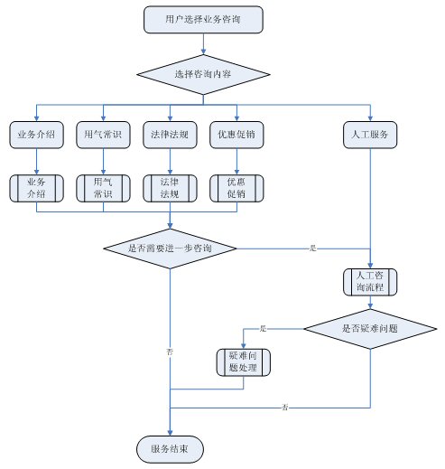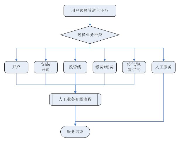 業(yè)務(wù)咨詢:用戶通過人工、自動(dòng)語(yǔ)音等方式咨詢有關(guān)政策法規(guī)、資費(fèi)標(biāo)準(zhǔn)、用氣常識(shí)、報(bào)裝方法等,系統(tǒng)以語(yǔ)音、傳真、Email、短消息等方式回復(fù)客戶。