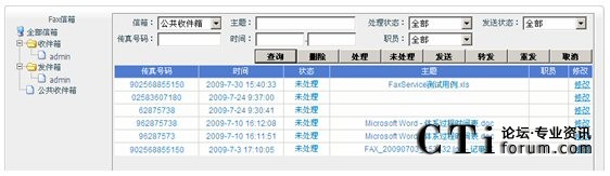打開(kāi)瀏覽器,輸入WebFax管理網(wǎng)站的地址,登陸,然后通過(guò)這個(gè)網(wǎng)站,查看收發(fā)傳真的狀態(tài),及接收傳真的圖像。可以進(jìn)行查詢(xún)、下載、發(fā)送、轉(zhuǎn)發(fā)、重發(fā)和刪除傳真。