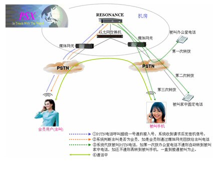 - 一號通:軟交換實現的對來自PSTN的呼叫提供一號通功能,電話可連續(xù)呼轉至5個不同的號碼;